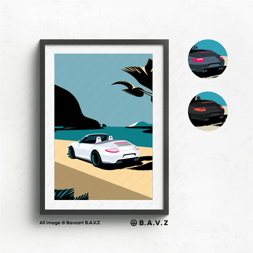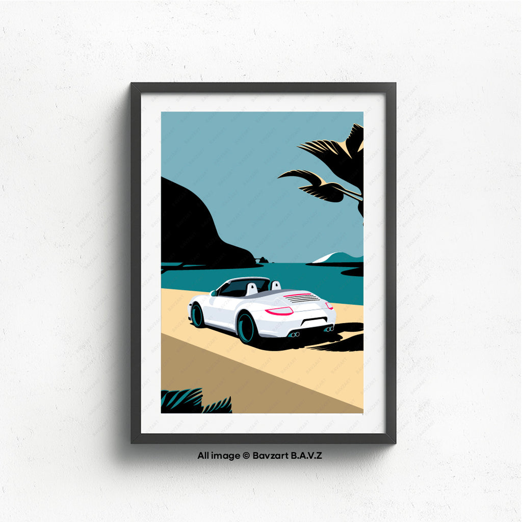 Nestled within the serene ambience of a coastal paradise, the Porsche 997 GTS Cabriolet emerges as the epitome of automotive sophistication against the backdrop of the sea and swaying palms. Bathed in the golden hues of a setting sun, the sleek contours of the Porsche seamlessly blend with the natural beauty surrounding it, creating an exquisite harmony between man-made engineering and the allure of nature.